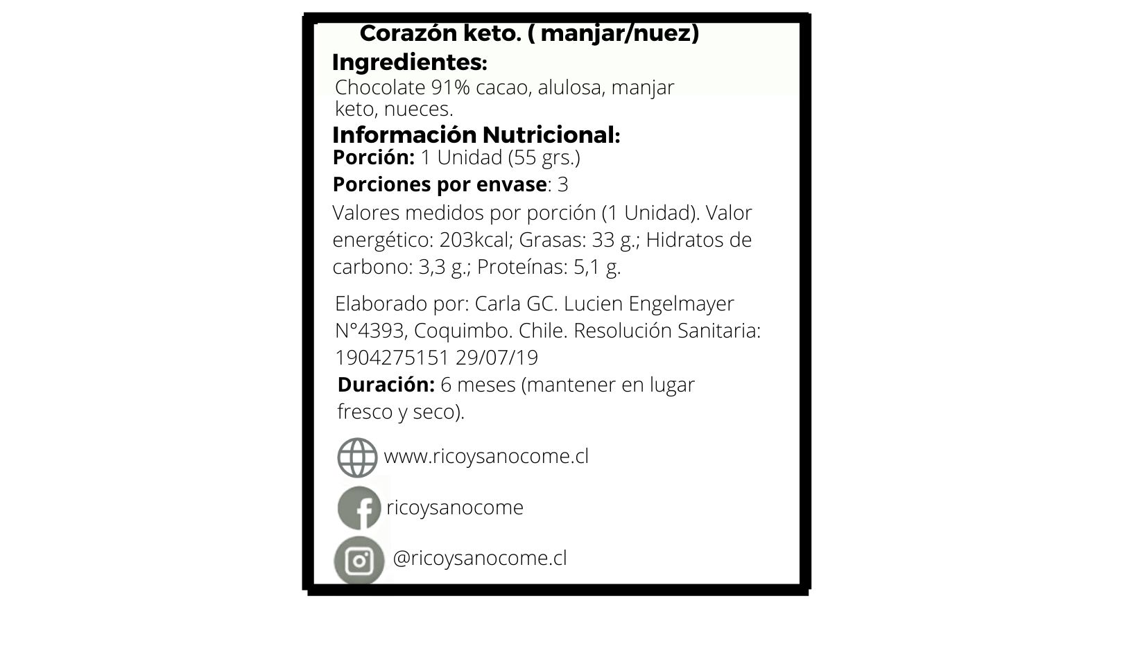 Corazon de Manjar y Nuez Keto, 3 unidades, marca Keto Free