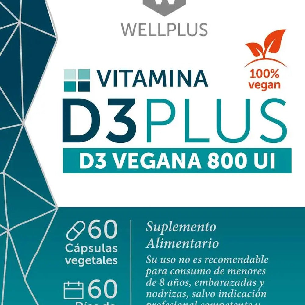 Vitamina D3 Plus Vegana es la única vitamina D3 (colecalciferol) 100% vegana del catálogo Be Free. La vitamina D3 convencional se extrae de lanolina (grasa de lana ovina) — por eso la mayoría de los D3 del mercado no son veganos. Wellplus obtiene su D3 de liquen (Cladonia rangiferina) — la única fuente vegetal documentada de vitamina D3, molecularmente idéntica a la D3 de lanolina.